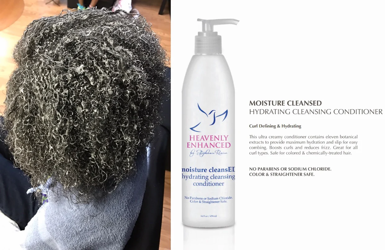 Heavenly Enhanced has a great co-wash, aka cleansing conditioner, called moisture maxED – hydrating conditioner. This ultra creamy conditioner contains eleven botanical extracts to provide maximum hydration and slip for easy combing. Detangles, boosts curls and reduces frizz. Great for all curl types. It’s a 3-in-1 cleanser, conditioner & leave-in conditioner.